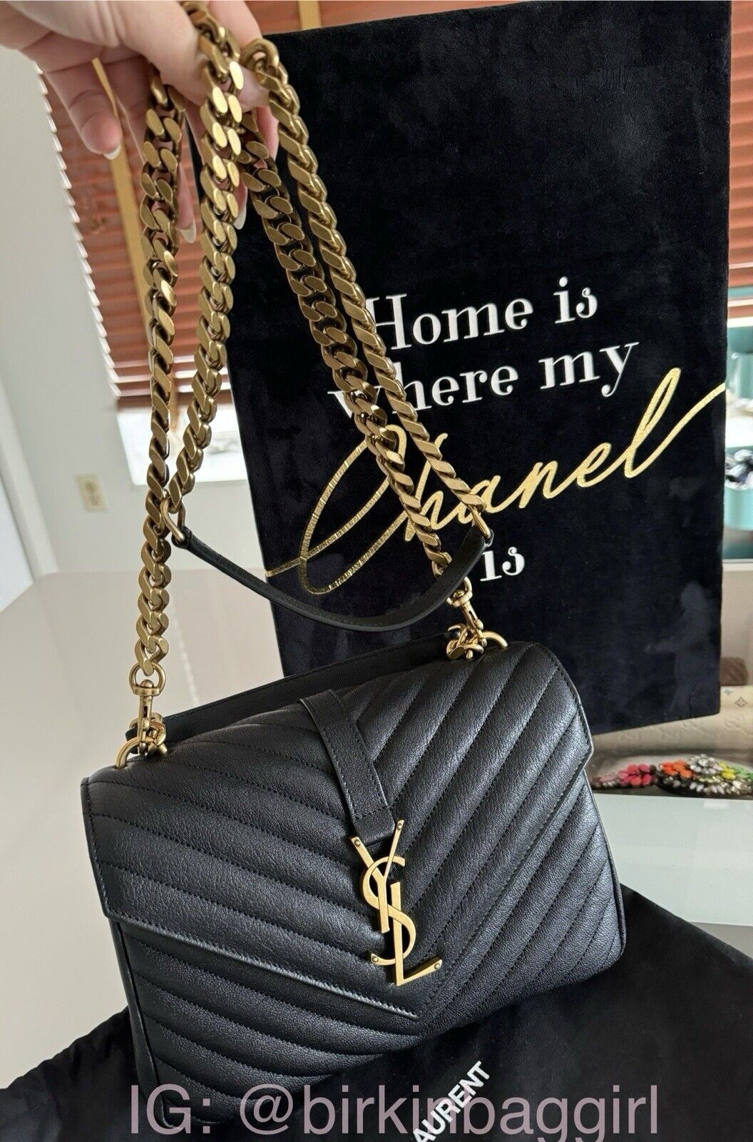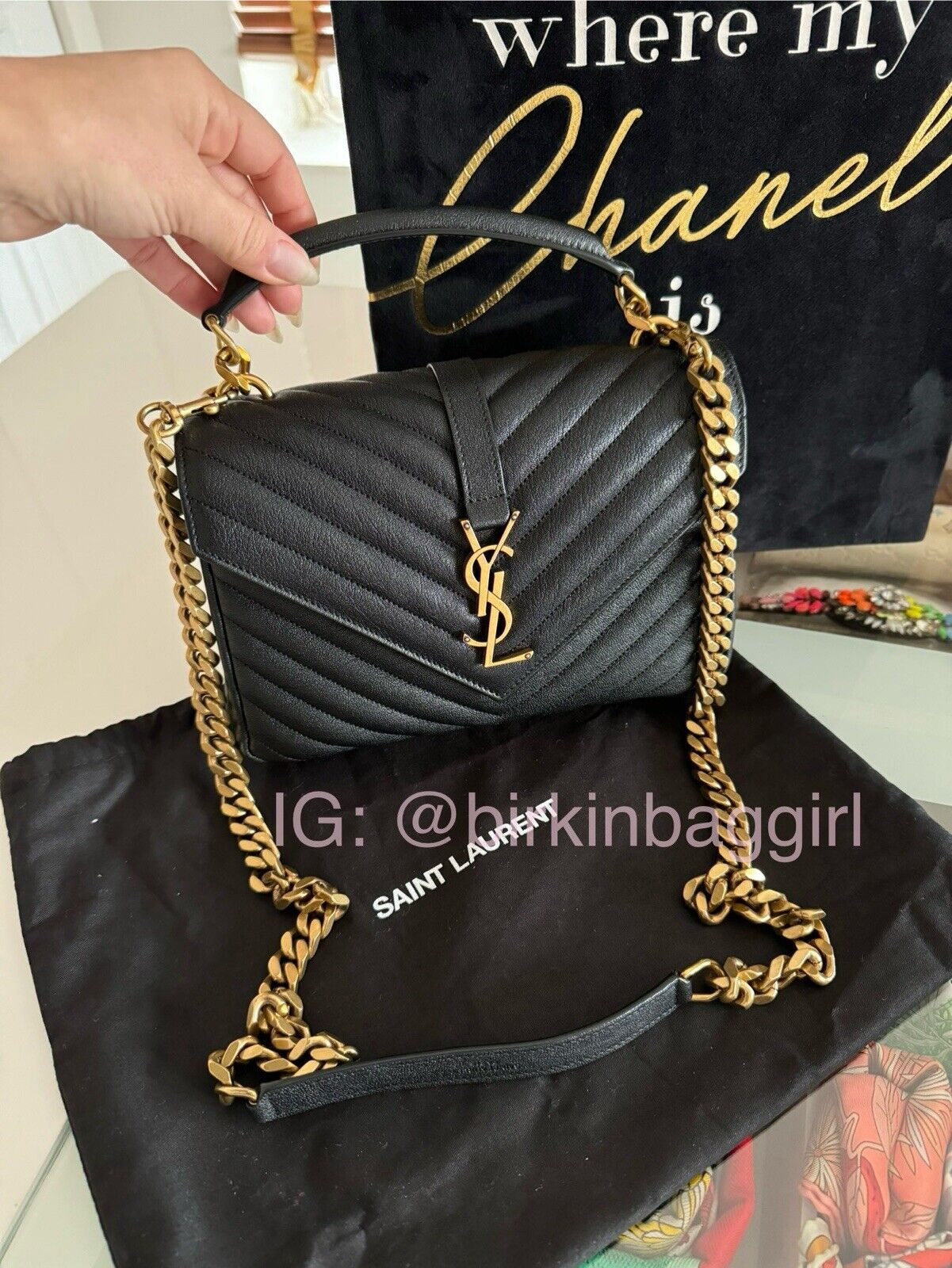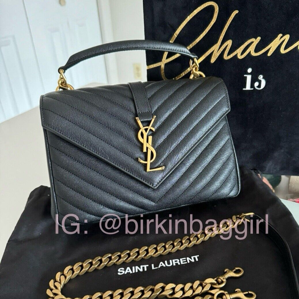 Saint Laurent Medium College Handbag Black Leather Bronze/Gold Hardware